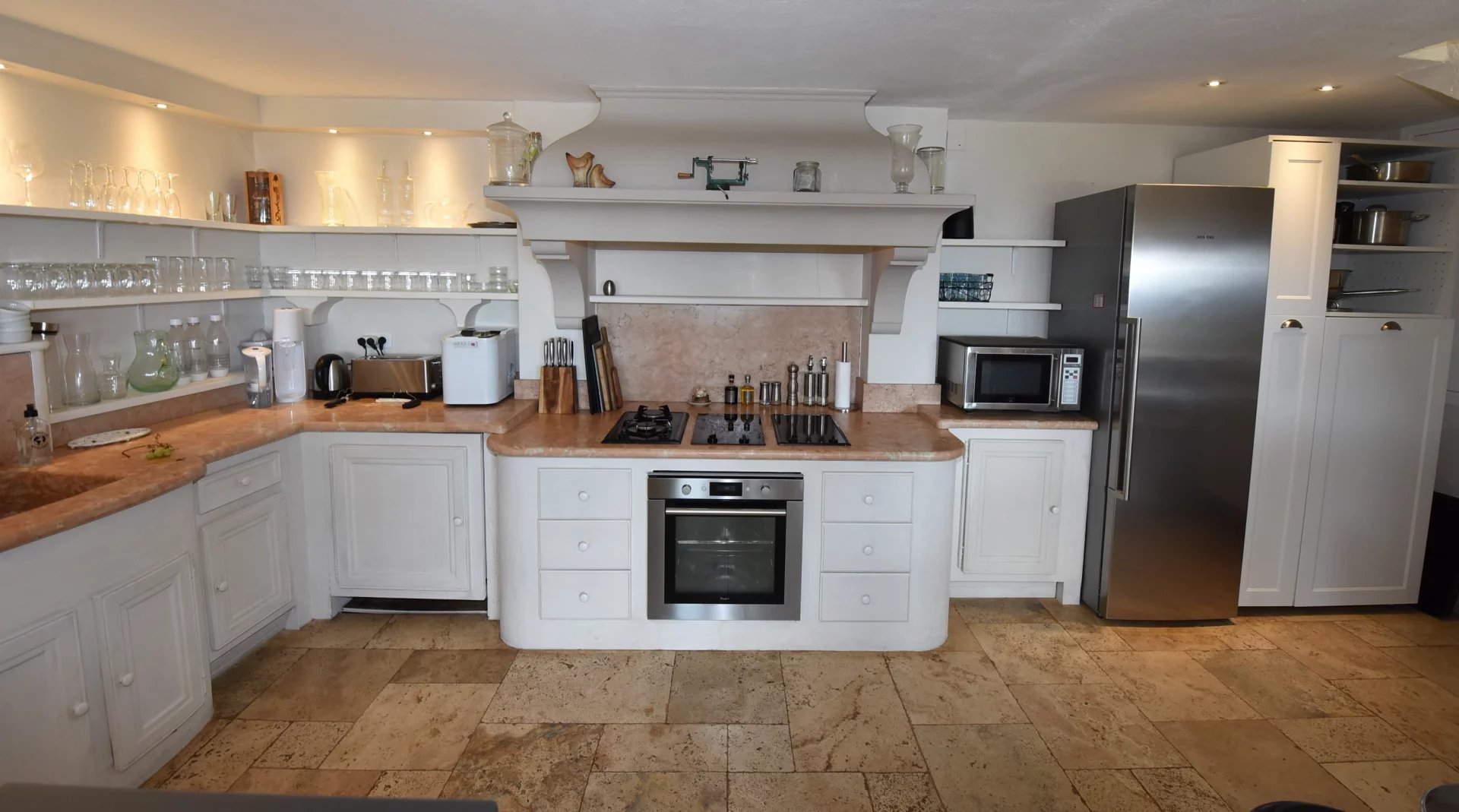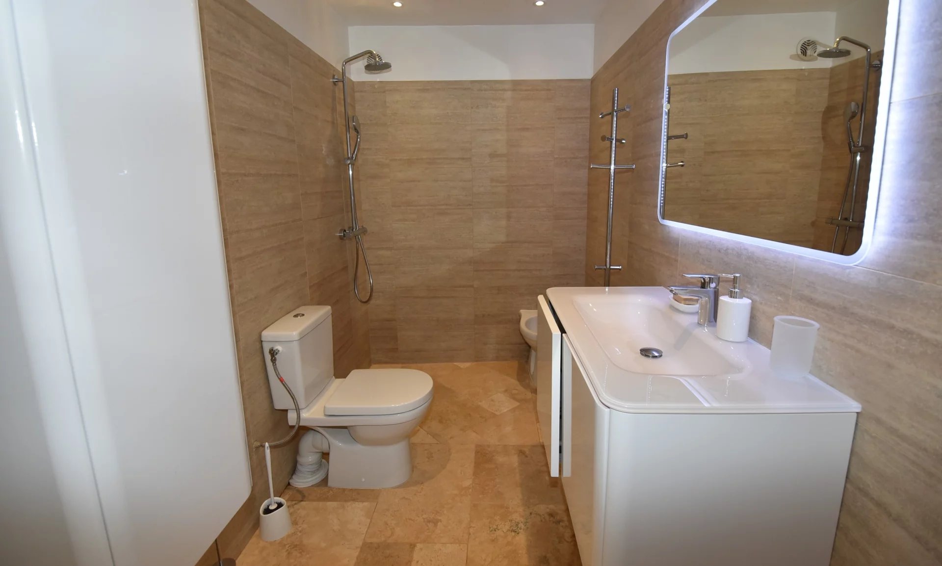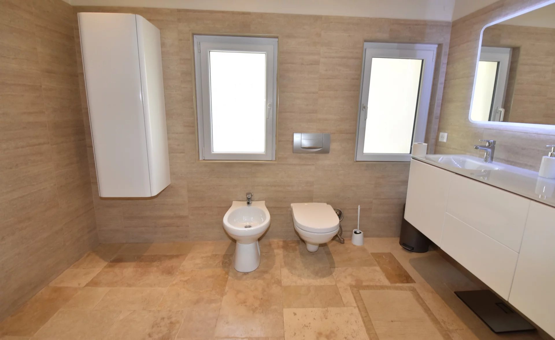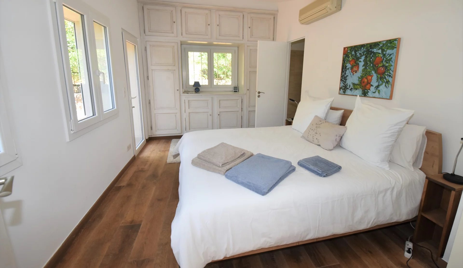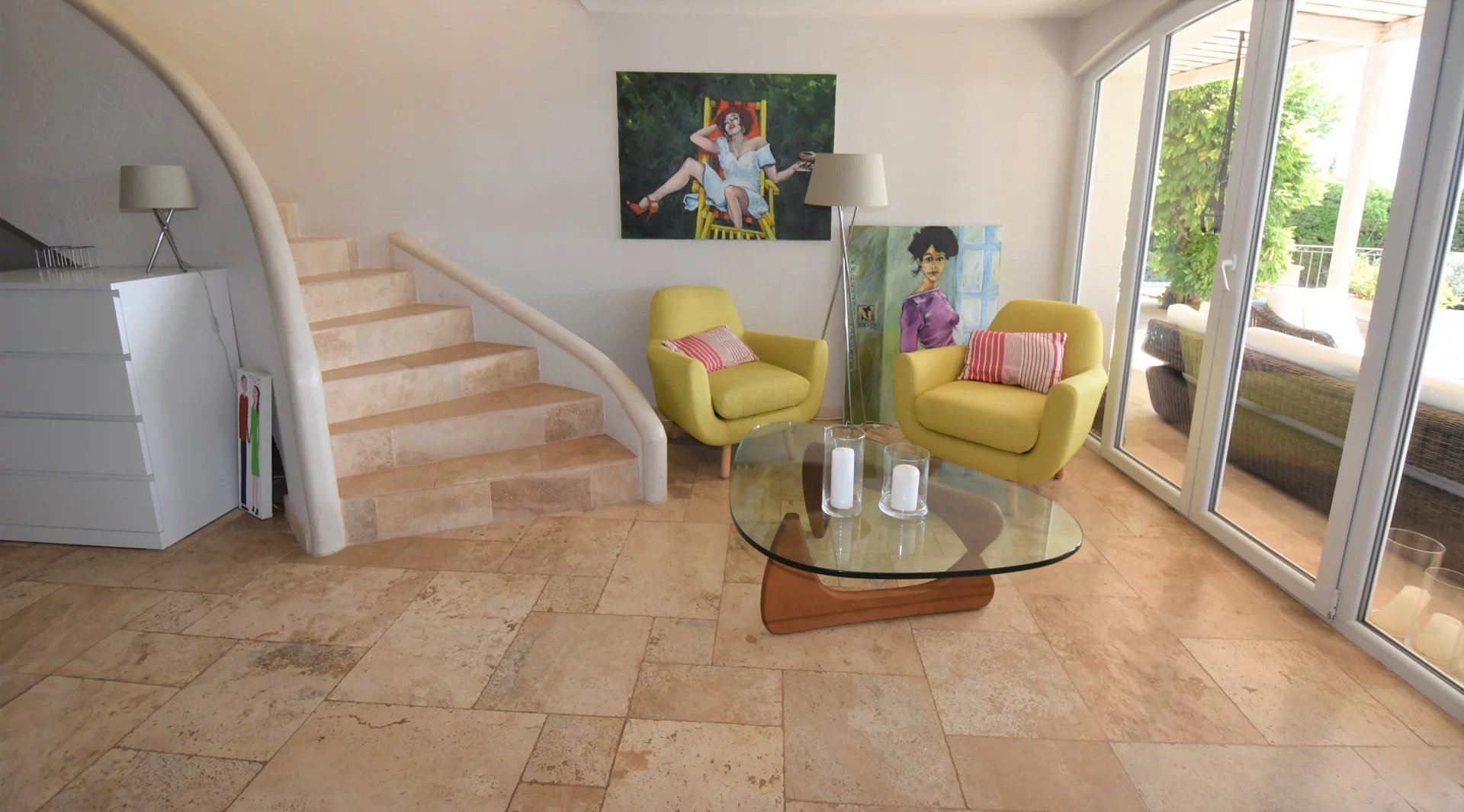 En position dominante, bénéficiant d'une vue panoramique sur la mer et les collines, villa individuelle comprenant un séjour avec une belle cuisine attenante, donnant sur une grande terrasse, en partie couverte. A l'étage, un salon avec cheminée, quatre chambres, toutes avec salles de bains ou douche et terrasses. Une dernière chambre toujours avec salle de douche, accessible par l'extérieur. Une grande buanderie, cave, garage fermé avec porte motorisée et parking avec portail électrique. Climatisation réversible dans toutes les pièces. Terrain paysager avec une belle piscine entourée d'une grande terrasse pour profiter de la splendide vue. Inclus dans le loyer, l'entretien du jardin et de la piscine.